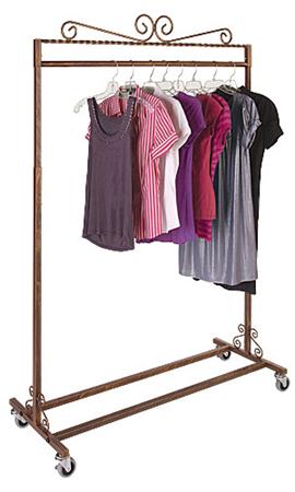 Impresione a sus clientes con este perchero, perfecto para ventas de liquidación! Debido a que tienen ruedas simplemente jale hacia fuera cuando usted los necesita - Nuestra colección cuenta con un acabado de cobre rematado con acentos decorativos tanto en la parte superior como inferior, en forma de S.