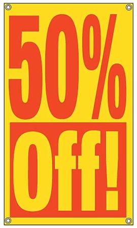 Va a encontrar un montón de usos para estos grandesy llamativos anuncios de 50% de descuento . Compre varios para tener a mano durante todo el año promociónes. Las ventosas se incluyen para permitir colocarlas en ventanas, con impresión de color rojo en vinilo de color amarillo resistente, impreso por ambos lados.