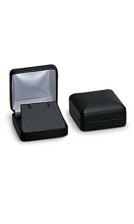 Mostrar hermosos dijes en estas elegantes cajas negras imitación piel negra con fondo de tela suave blanca.