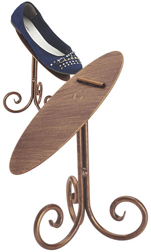 Dele un toque muy elegante a su calzado mostrandolo en este exhibidor de zapatos! Este exhibidor viene en un acabado cobrizado y tiene una altura de 6 "u 8" alturas.