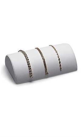 Las pulseras se verán mejor cuando las muestre en este exhibidor de imitacion piel. Este exhibidor en medio circulo le proporciona un atractivo visual en sus vitrinas.