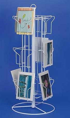 Las tarjetas de felicitación se visualizan mejor exhibiendolas en este exhibidor. El exhibidor de tarjetas de felicitación es con un acabado blanco.