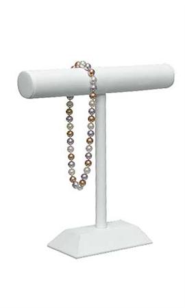 En este exhibidor en forma de T usted puede mostras collares / pulseras y otras joyas. Un nivel proporciona una fácil visualización de la mercancía sobre un fondo de imitacion piel.