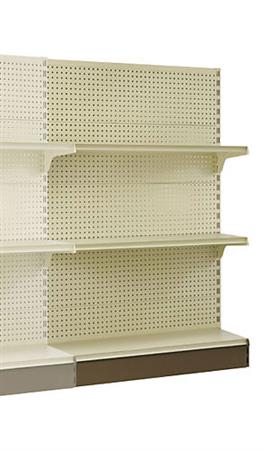 Estas gondolas metalicas de pared son fuertes y de alta calidad para su tienda. Ajuste fácilmente las unidades para adaptarla a su mercancía en cuanto a tamaño y espacio. Añada los articulos opciones como: Tapones, vallas y señalización y repisas que se venden por separado.