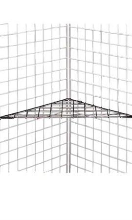 Esta repisa triangular es ideal para aprovechar hasta el ultimo espacio como son las esquinas. Estas repisas son perfectas para cualquier panel de malla de alambre y dan una buena presentacion a su mercancia.